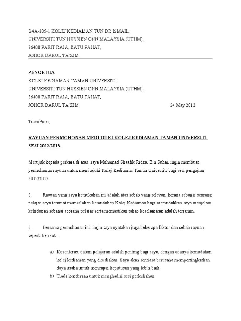 Download contoh surat rayuan kemasukan universiti download document. Download contoh surat rasmi permohonan upu rasmi h. Dekan, fakulti teknologi dan sains maklumat universiti kebangsaan malaysia 43600 ukm bangi, selangor darul . Contoh surat rayuan upu cute766.